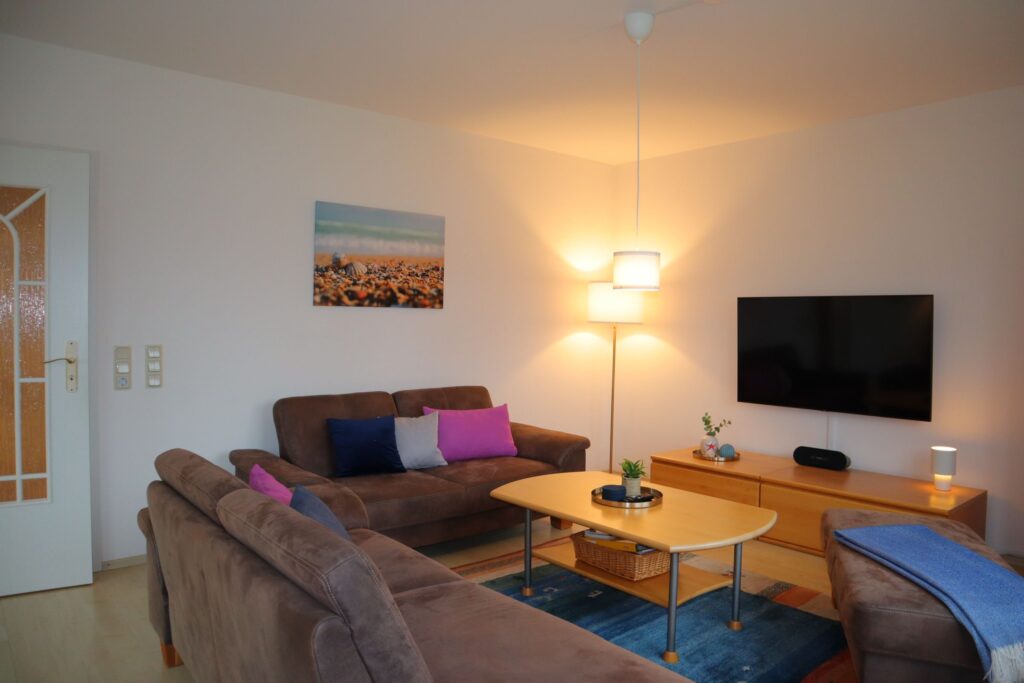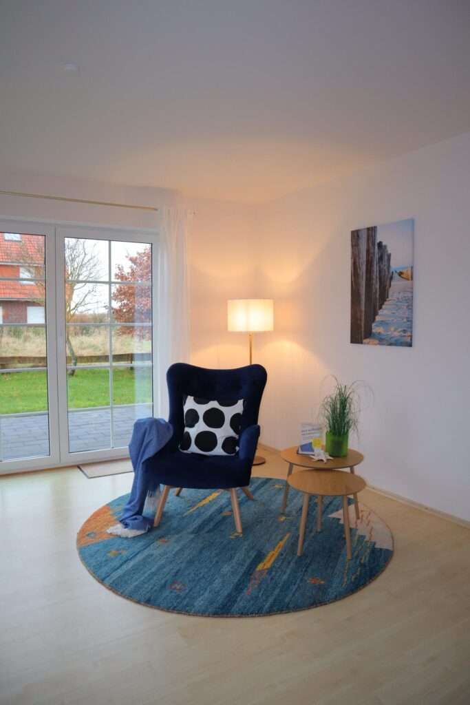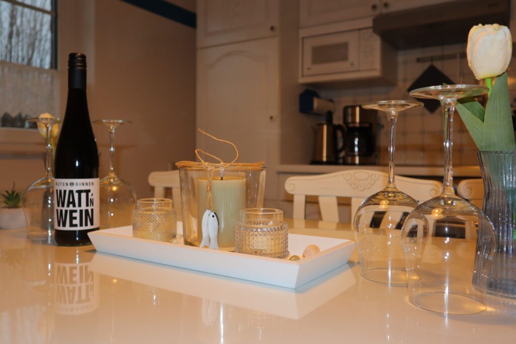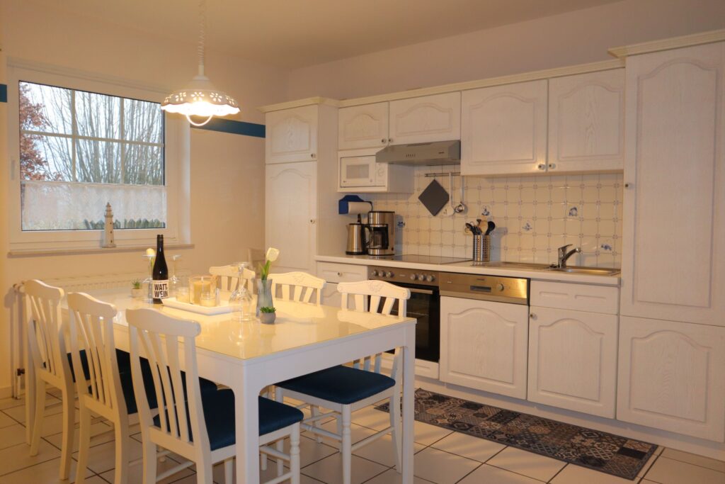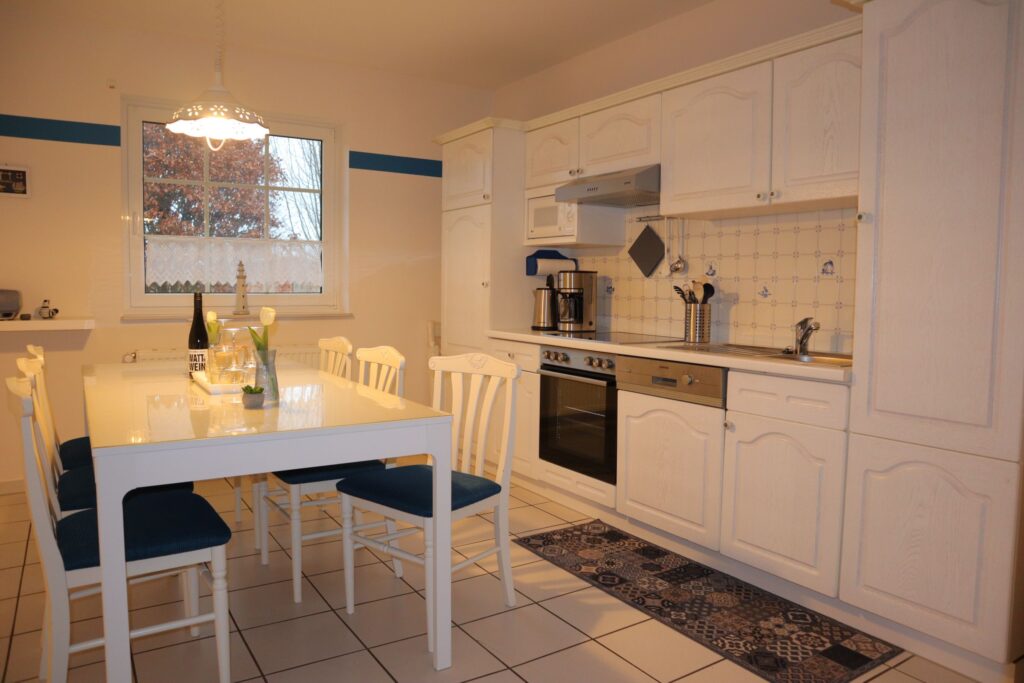Im Inneren ...Weiterlesenerwartet Sie ein helles, freundliches Ambiente mit viel Raum zum Ankommen und Wohlfühlen. Der großzügige Wohnbereich lädt zu gemeinsamen Stunden ein – ob beim Spielen, Lesen oder gemütlichen Abenden. Die separate, voll ausgestattete Küche bietet moderne Küchengeräte, viel Arbeitsfläche und alles, was Sie für die Selbstverpflegung im Urlaub benötigen. Besonders praktisch für größere Familien ist der separate Gefrierschrank, ideal für Vorräte, Eis oder fangfrischen Fisch aus dem Hafen.
