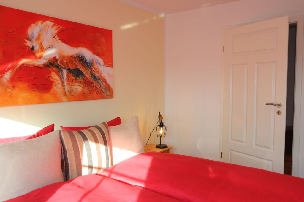 Schlafzimmer: 1 Doppelbett, offenes Fußende